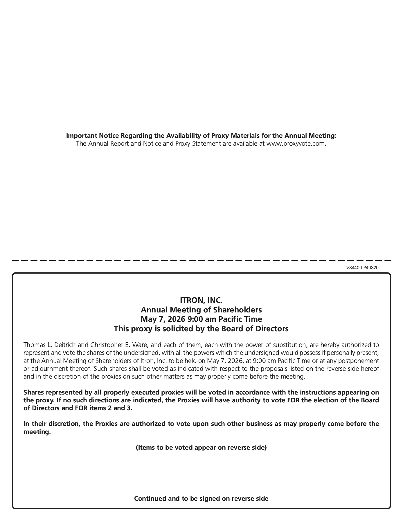 A copy of our 2025 Annual Report to Shareholders, which includes our financial statements for the year ended December 31, 2025, accompanies this proxy statement. In addition, you may view the Annual Report and this proxy statement on our Company website, www.itron.com, by selecting “Investor Relations” and then “Financials and Filings.”