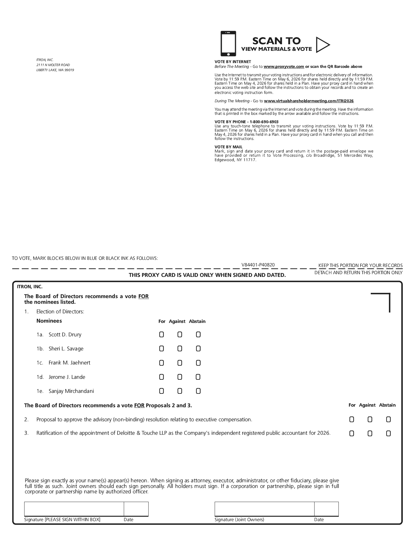 Shareholder proposals should be directed to the attention of our Corporate Secretary, Itron, Inc., 2111 N. Molter Road, Liberty Lake, Washington 99019.